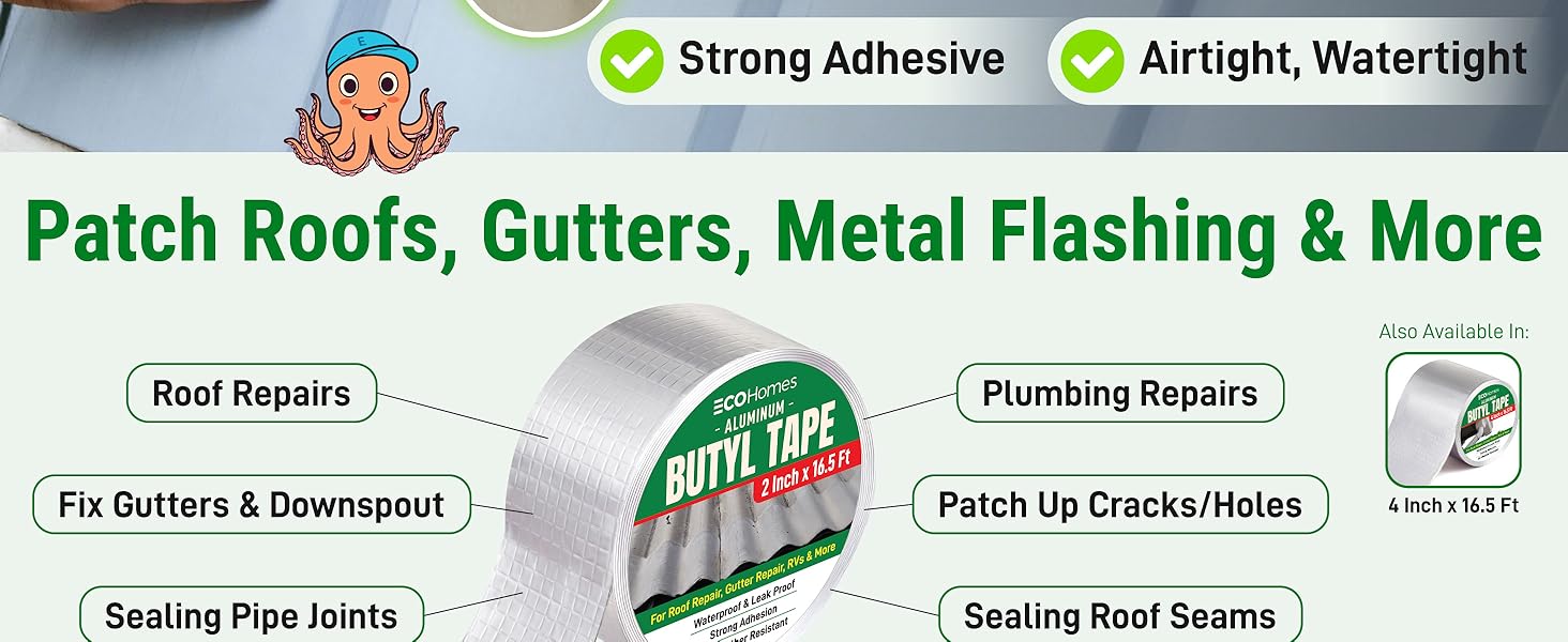 Made with pure butyl rubber and a thicker aluminum foil cover, this tape is built to last. It's designed to endure extreme outdoor conditions, from freezing cold to intense heat (up to 250°F).