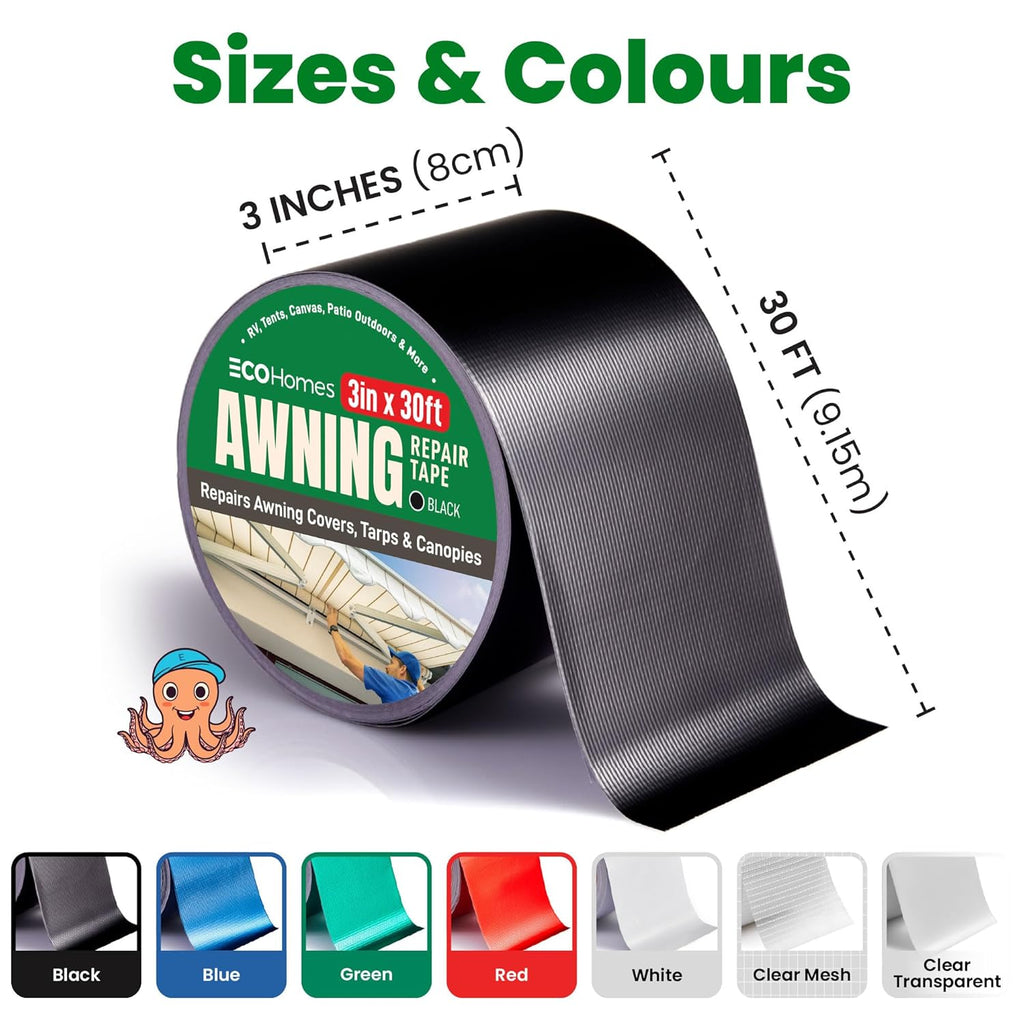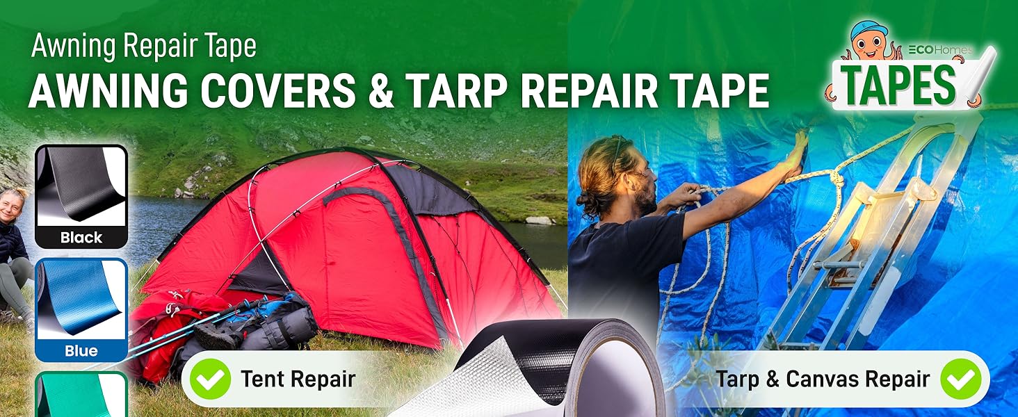 Made from a waterproof, heat-resistant, and weather-resistant composite fabric. This heavy-duty tape provides an incredibly strong, waterproof bond for quick, lasting fixes on RV awnings, tents, tarps, boat covers, and more.