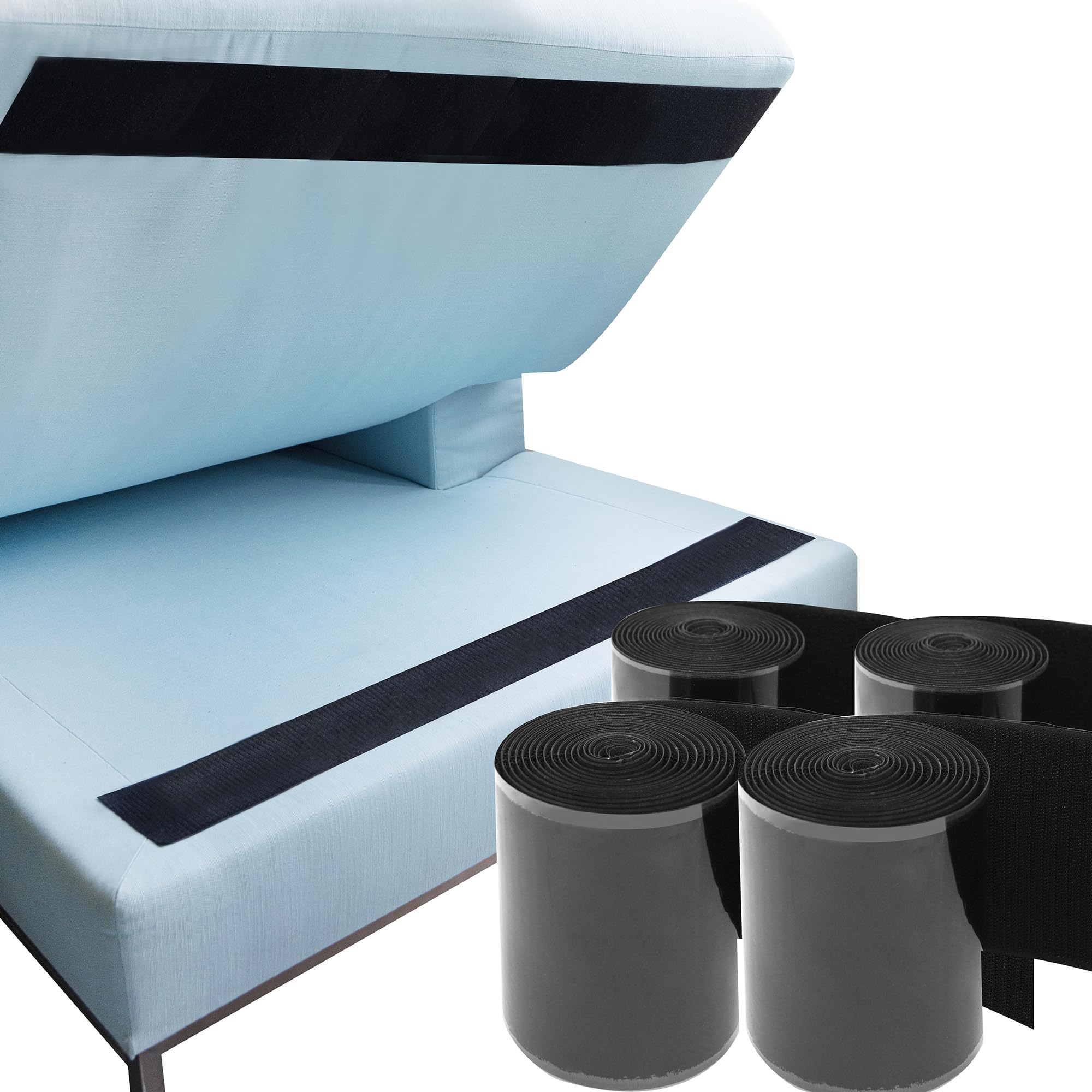 Heavy-duty self-adhesive hook and loop strips that lock couch cushions in place.