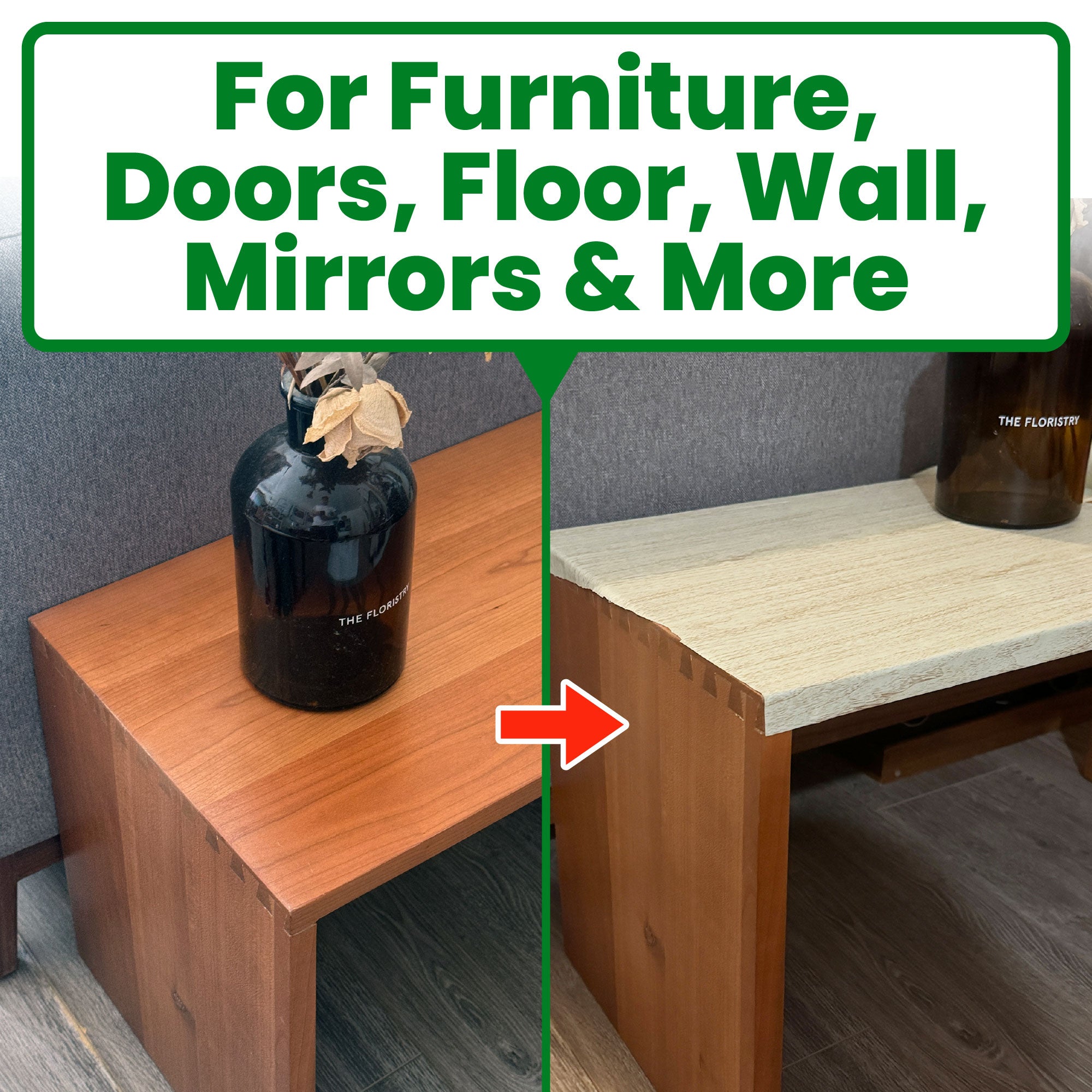 - Ideal for furniture, cabinets, floors, doors, and trim